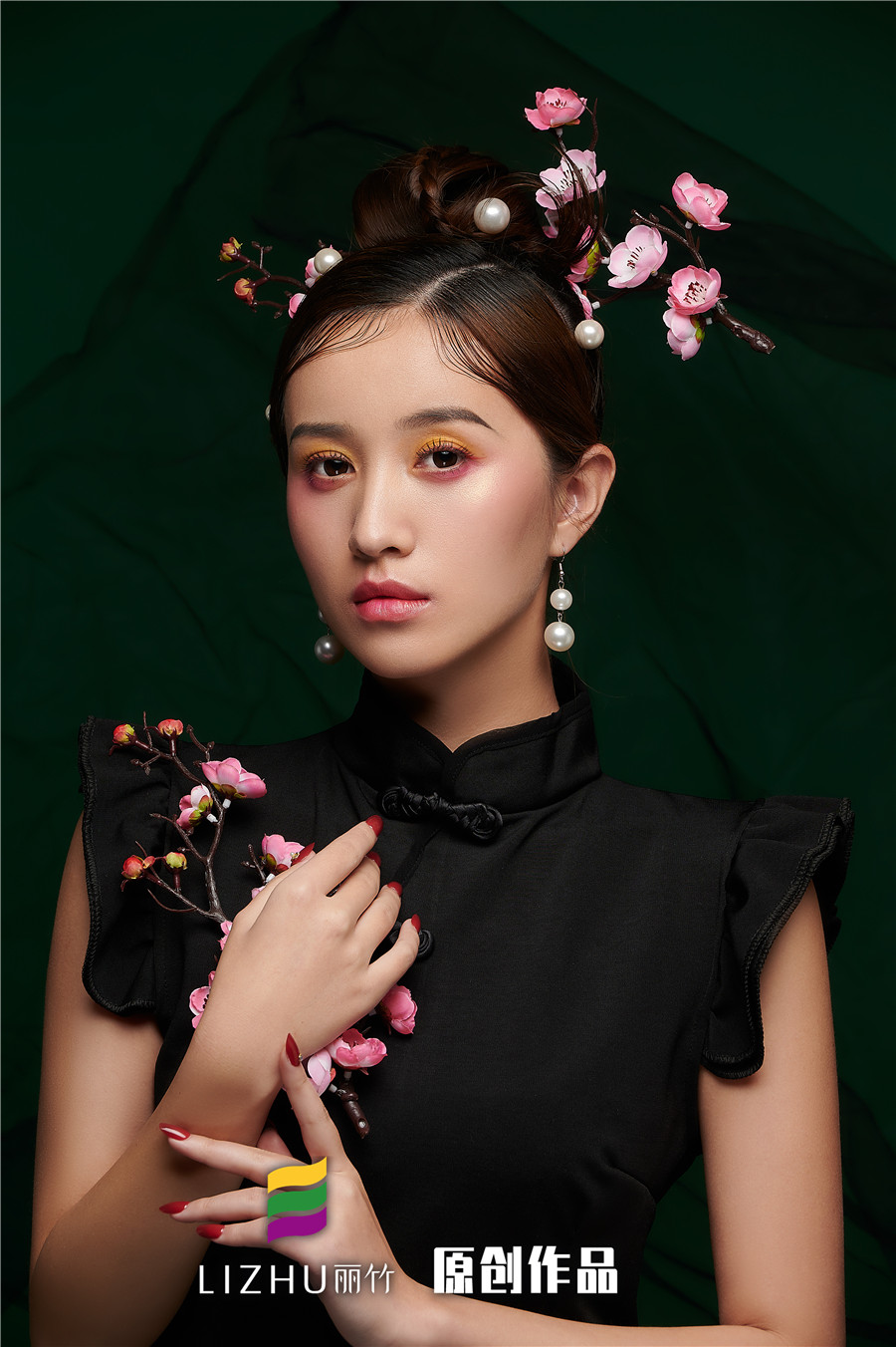 南寧化妝培訓:又颯又酷的造型,發(fā)絲間別一抹花香,添加眉眼里的柔美感覺(jué),即使身穿高冷的黑旗袍,也讓人心生愛(ài)戀,難以忘懷。