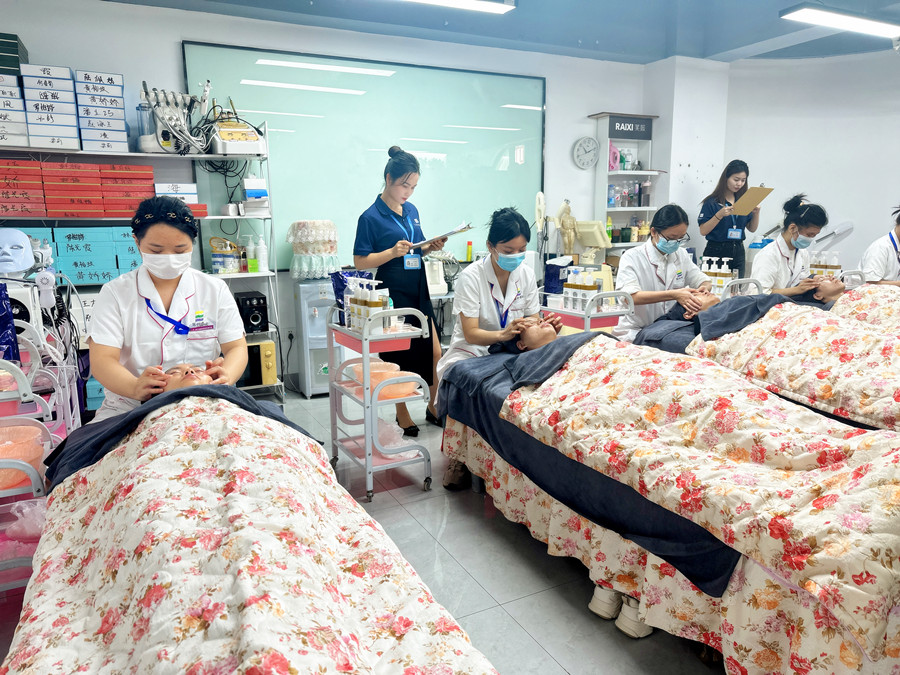 南寧美容考試、南寧學(xué)美容面部護膚:為了檢驗同學(xué)們每個(gè)階段的學(xué)習狀況,南寧美容護膚學(xué)校(麗竹美容護膚學(xué)校)舉行了美容護理基礎班的升班考核。下面,就和我們一起去看看南寧美容培訓班同學(xué)需要考核哪些內容吧!