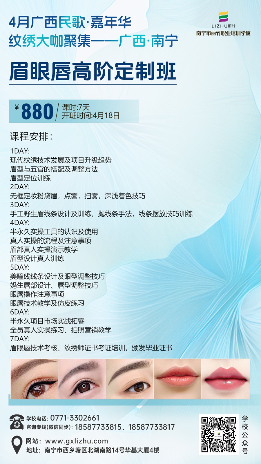眉眼唇日益成熟的技術(shù),讓越來(lái)越多的人愿意去進(jìn)行項目操作,而現在廣西紋繡行業(yè)市場(chǎng)上出現的紋繡師供不應求的缺口,也讓很多人看到眉眼唇技術(shù)背后隱藏的巨大流量。所以,如果你也想從中分得一杯羹,廣西紋繡學(xué)校推薦你可以到麗竹學(xué)校紋繡培訓去參觀(guān),試聽(tīng),了解課程,滿(mǎn)意之后在報名。