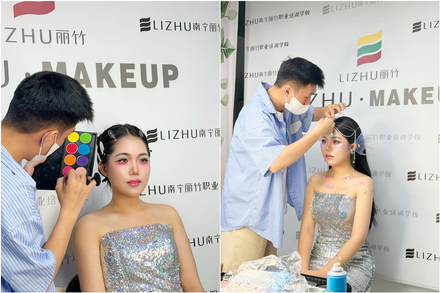 學人魚公主造型手法示范,了解南寧化妝學校怎么招生?